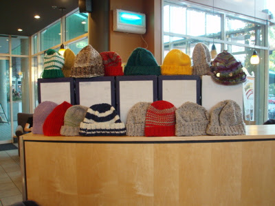 We've raised money for Stasia (around $120) who does a soup kitchen in the city on Friday nights. We've contributed about 22 beanies and everyone is going to be leaving with great prizes which have been kindly donated by members of the group and some anonymous businesses. Prizes also donated by Cassidy's in Kingston. There are donated books such as Big Girls Knits, a Kaffe Fasset and handspun and dyed yarn by some of some of group. We are such a talented bunch!